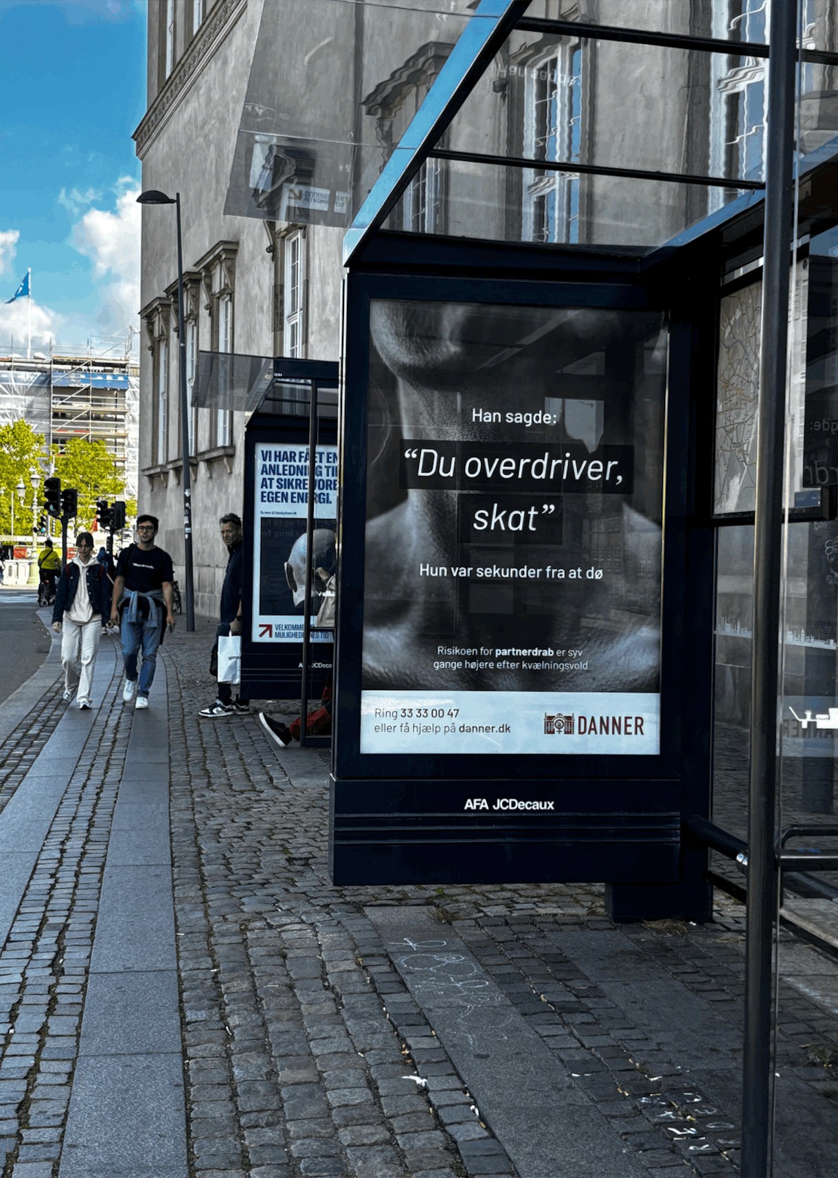 Strangulation is one of the strongest predictors of intimate partner homicide — yet it remains widely unrecognised in Denmark. Many women who are subjected to strangulation by their partner struggle to recognise it as violence. Memory loss and gaslighting blur the line between abuse and “just an argument”, often preventing them from seeking help. To help these women recognise the violence and show them where to turn for help, we created “He Said.” An outdoor campaign built on the words women were told by their abusers, drawn from their own experiences. By placing those words in public and confronting them with reality, the campaign turned doubt into clarity and made a hidden form of violence impossible to ignore. Through the campaign, Danner saw a rise in women reaching out for help, alongside widespread engagement on social media.